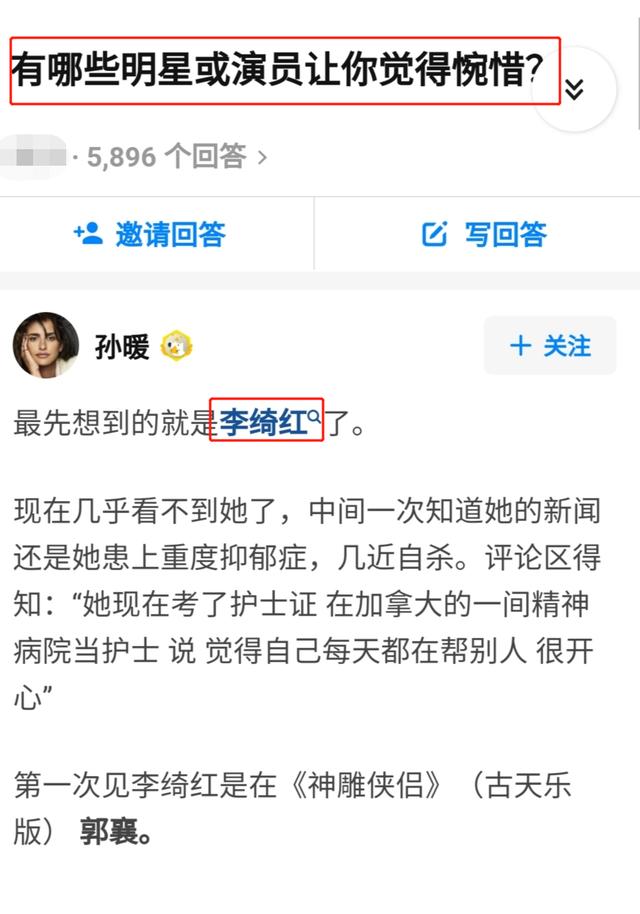 某乎上。关于“有哪些明星或演员让你觉得惋惜”。点赞最多的回答便是李绮红。