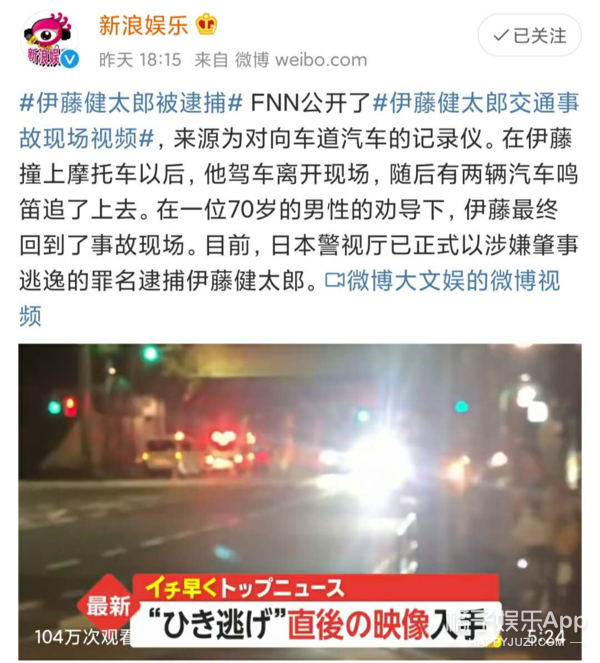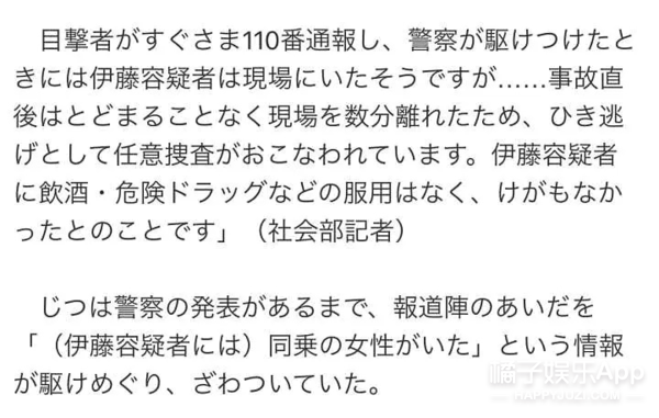 目前。伊藤健太郎已经承认了自己肇事逃逸的事实。被警方逮捕; ▽