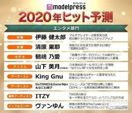 去年年底日媒发布的2020爆红预测。他还被提名了 ▽