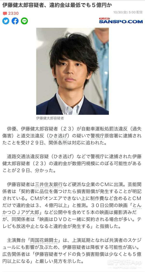 有人统计这次他涉及到的广告赔偿违约金最低可能有五亿日元 ▽