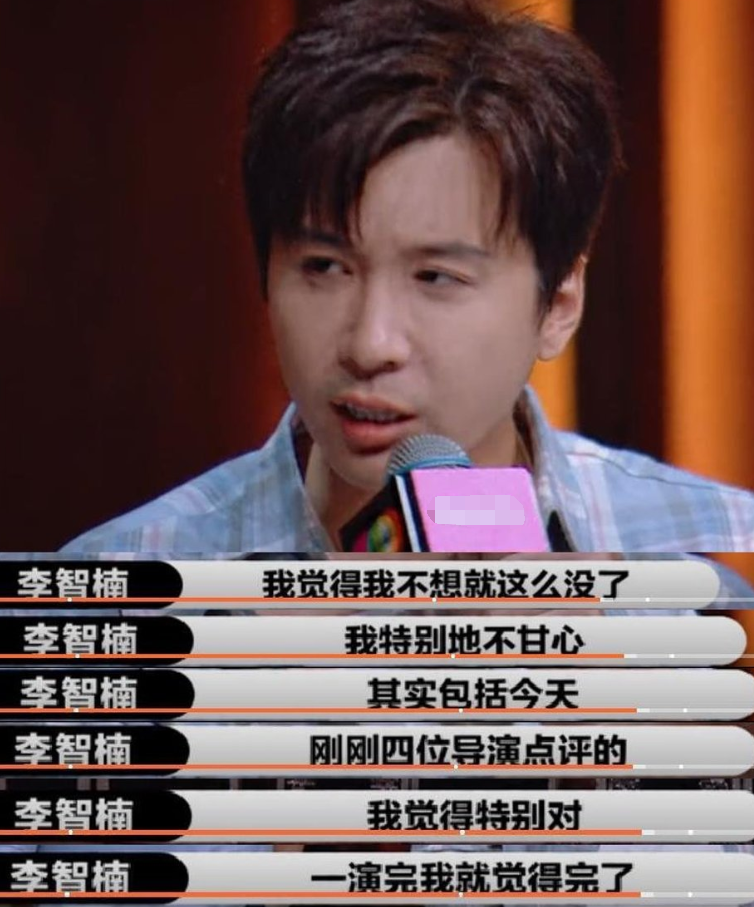 听完四位导师的点评后。李智楠内心非常难受。承认自己没有演好。没有融入角色。自己都感觉到出戏。