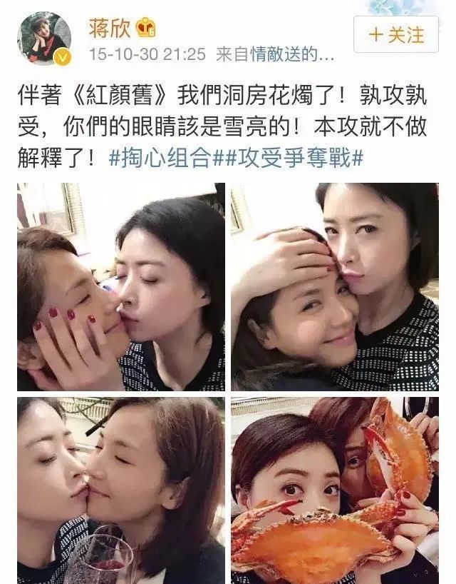 关系好到一起“洞房花烛夜”。蒋欣还称自己为“本攻”。