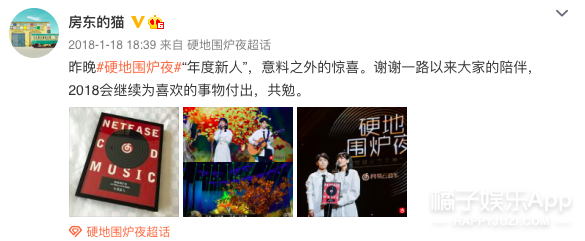 第一次拿奖——网易云音乐原创盛典“硬地围炉夜”年度新人奖▼
