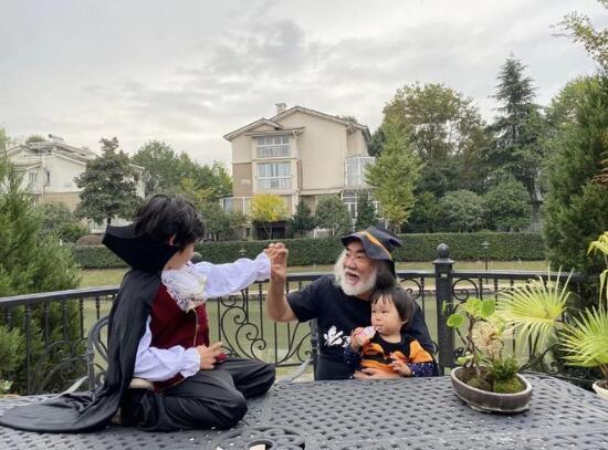 11月1日。张纪中娇妻杜星霖晒出了老公带着三个孩子一起欢度万圣节的照片。画面看起来温馨有爱。称张纪中从没缺席过孩子的成长。是孩子们最有担当最懂爱的父亲。照片中。69岁的张纪中身穿着黑色T恤。头上戴着一顶黑色帽子。头发与胡子花白。但是精神气很好。他怀里抱着女儿。满眼爱意。但是毕竟年龄差距太大。被嘲像爷