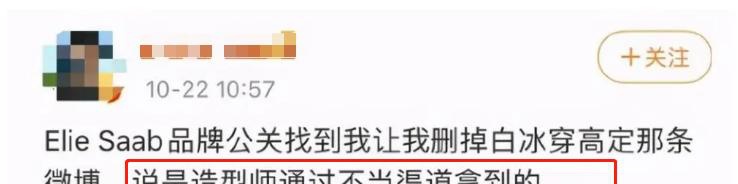 据相关人员透露。白冰参加活动身穿的高定礼服。是其造型团队经过非正当途径借来的。